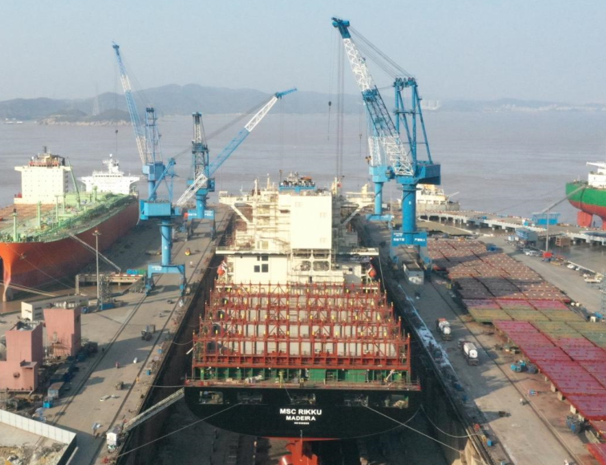發(fā)布時(shí)間:2023-12-23 點(diǎn)擊量:359612月22日下午,地中海航運(yùn)旗下一艘集裝箱船“MSC RIKKU”(340M*46M)緩緩駛離舟山華豐白泉基地3號(hào)碼頭,該船自11月6日入廠以來,經(jīng)公司科學(xué)調(diào)配緊張施工,完成了雙燃料主機(jī)改造、混合式脫硫改裝、螺旋槳換新、常規(guī)塢修等項(xiàng)目,從而大大縮短了預(yù)定周期。